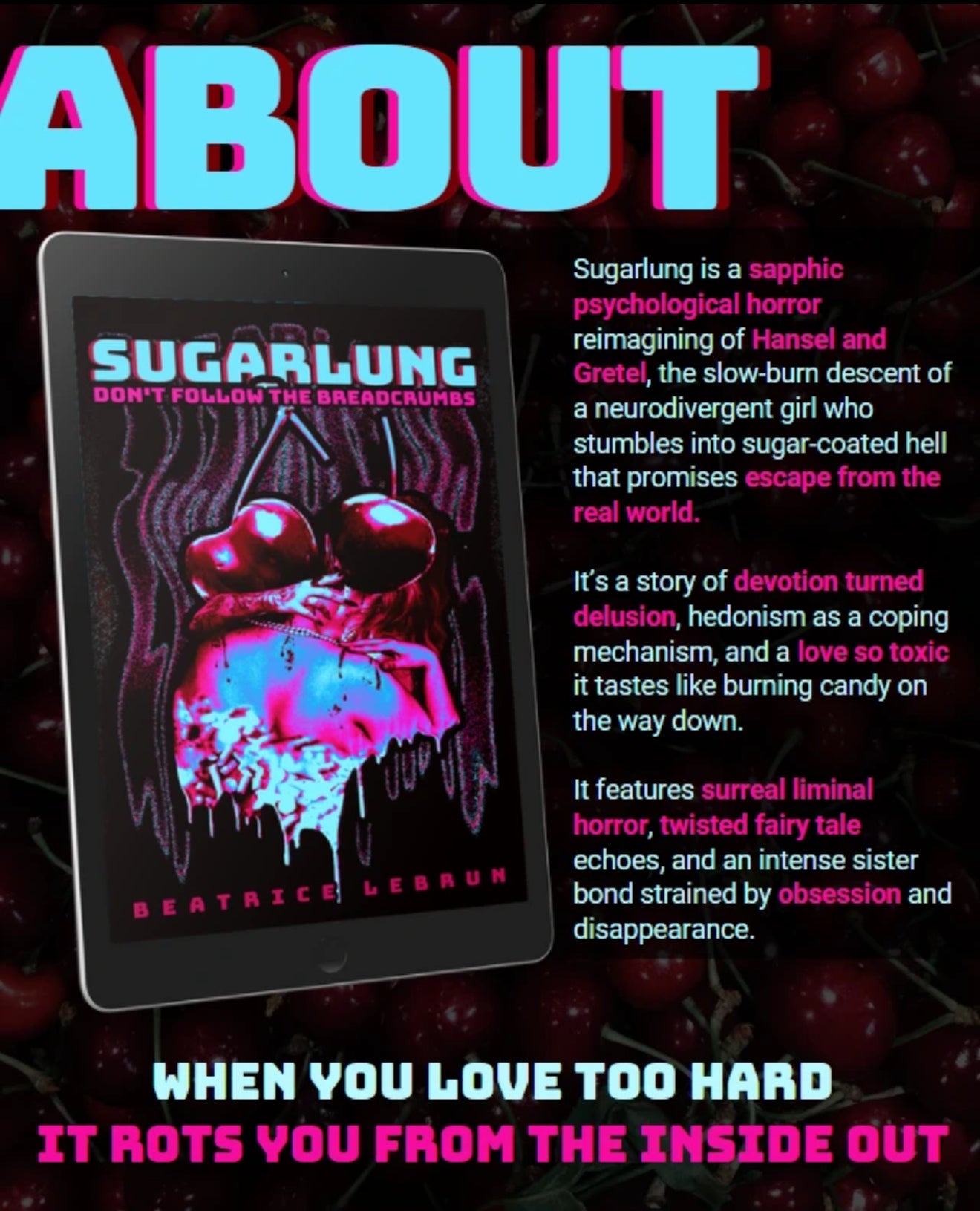 Glowrot is a queer psychological horror novel that mixes found family gone wrong, toxic obsession, and a twisted version of Alice in Wonderland. It's got toxic longing, liminal spaces, and nonbinary rep that isn't a side character or a footnote but the heart of the story.